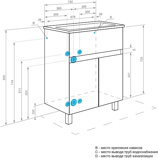 Комплектация: тумба, ножка (2 шт.), крепеж.