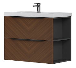 Equil Тумба под раковину Forest 80 2 ящика подвесная орех/графит