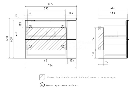 - Корпус изготовлен из влагостойкого ЛДСП в цвете графит.