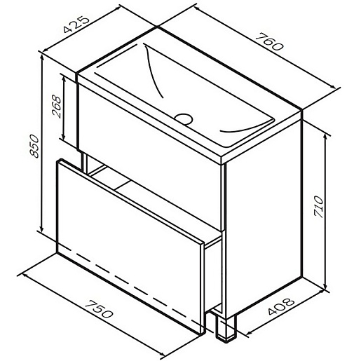 - 2 выдвижных ящика с системой открытия нажатием Push to Open.