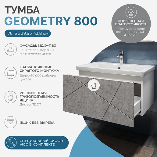 Тумба под раковину Vigo Geometry 800-0-1 - арт. 035 бетон.