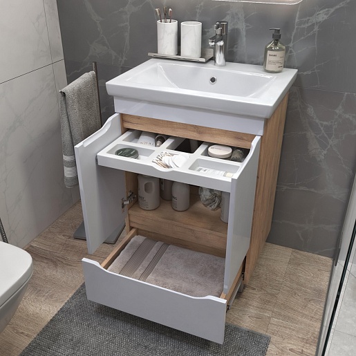 Vigo Тумба под раковину Grani 600-2-1 белая/дуб золотой