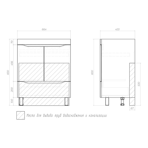 Vigo Тумба под раковину Grani 70 2 дверцы 1 ящик напольная белая