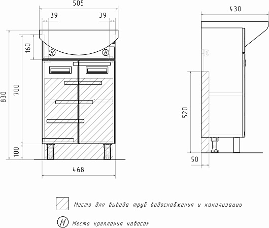 Комплектация: тумба, ножка (4 шт.), крепеж.