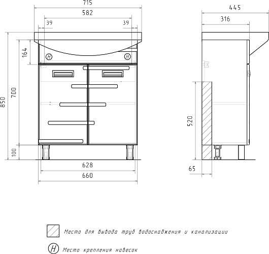 Комплектация: тумба, ножка (4 шт.), крепеж.