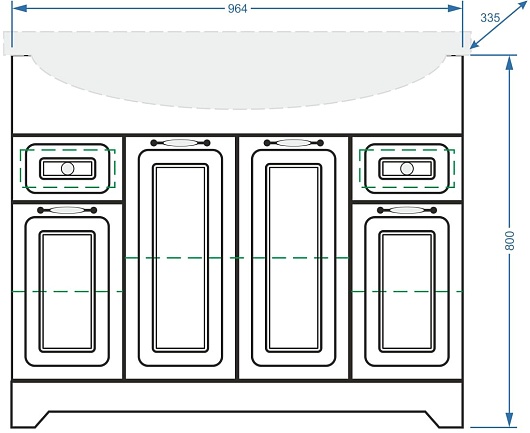 - 2 выдвижных ящика, 4 распашные дверцы.