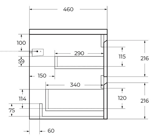 Ящики оснащены доводчиками скрытого монтажа с системой Soft close (плавного закрывания).