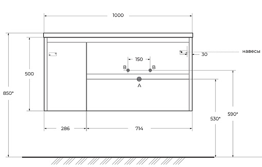 Габариты корпуса тумбы (ШхВхГ): 1000х500х460 мм.
