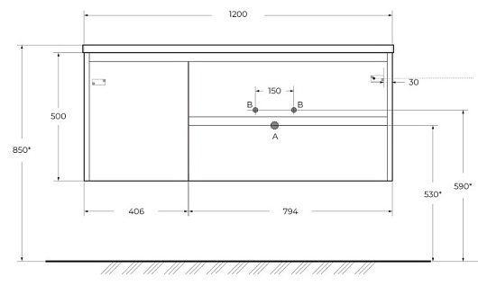 Габариты корпуса тумбы (ШхВхГ): 1200х500х460 мм.