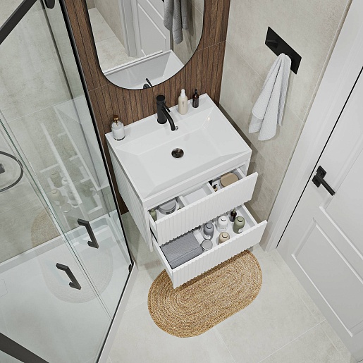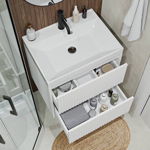 Vivon Тумба под раковину Kristi 60 подвесная белая матовая рифленая