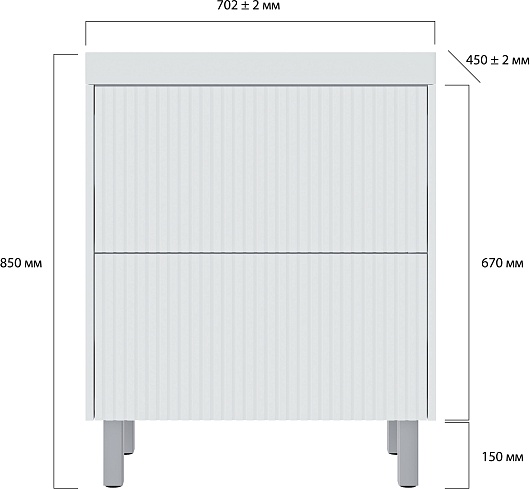 Vivon Тумба под раковину Kristi 70 белая матовая рифленая