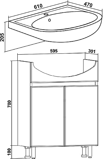 - 2 распашные дверцы.