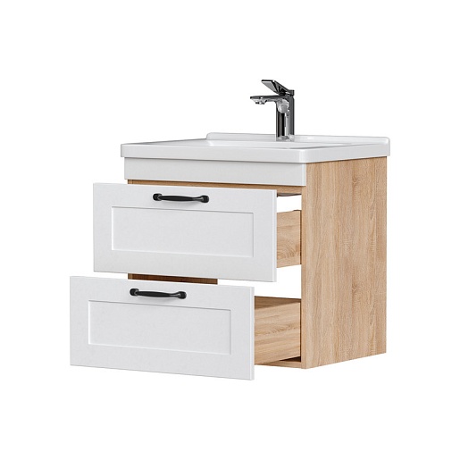 Equil Тумба под раковину Lago 60 2 ящика подвесная белая/дерево
