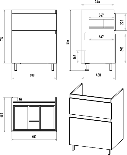 Комплектация: тумба, ножки, крепеж.