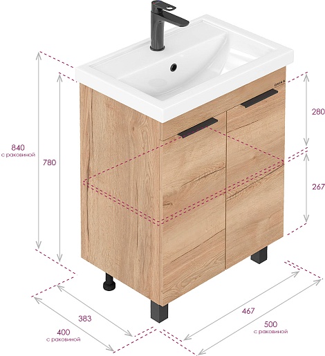 Onika Тумба под раковину Легран 50 дуб галифакс