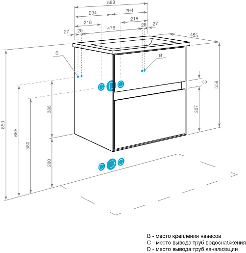Тумба под раковину Акватон Либерти 60 - арт. 1A279401LYC70.