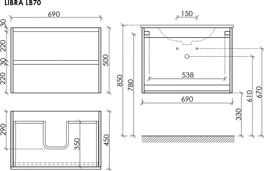 Sancos Тумба под раковину Libra 70 дуб чарльстон