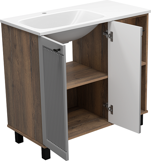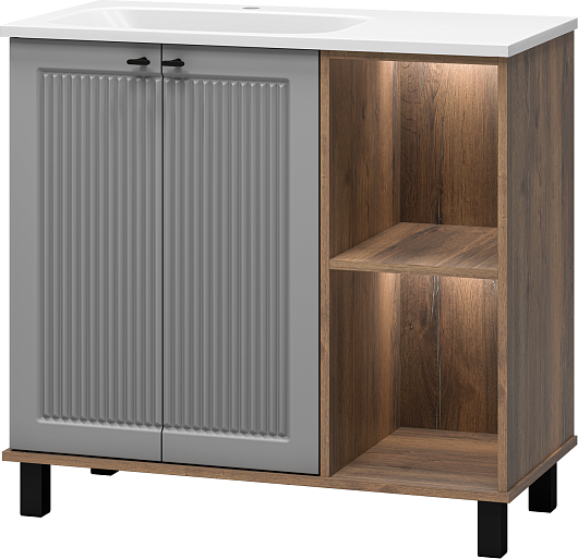Brevita Тумба под раковину Lumus 90 L с подсветкой серая/дуб галифакс олово