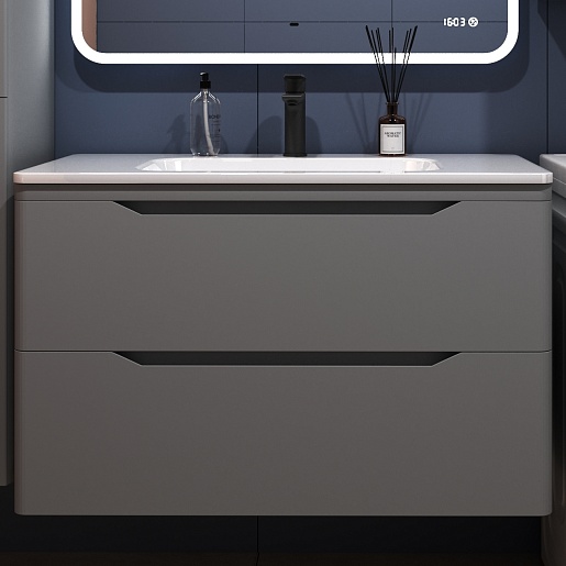 Style Line Тумба под раковину Марелла 90 Люкс Plus антискрейтч подвесная серая матовая