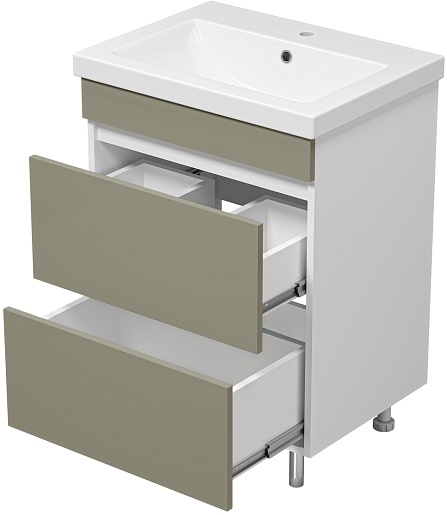 Тумба под раковину Misty Майна 60 2 ящика хаки/белая - арт. Э-Май01060-532Я.