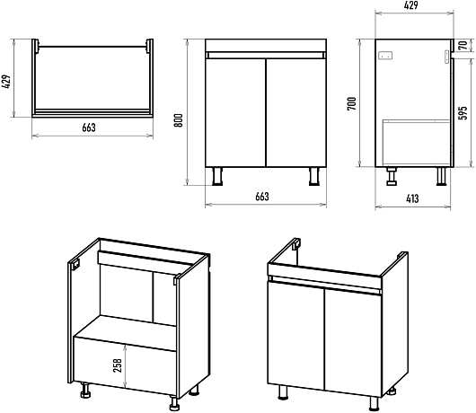 - Покрытие корпуса/фасада: ламинат / матовая пленка ПВХ.