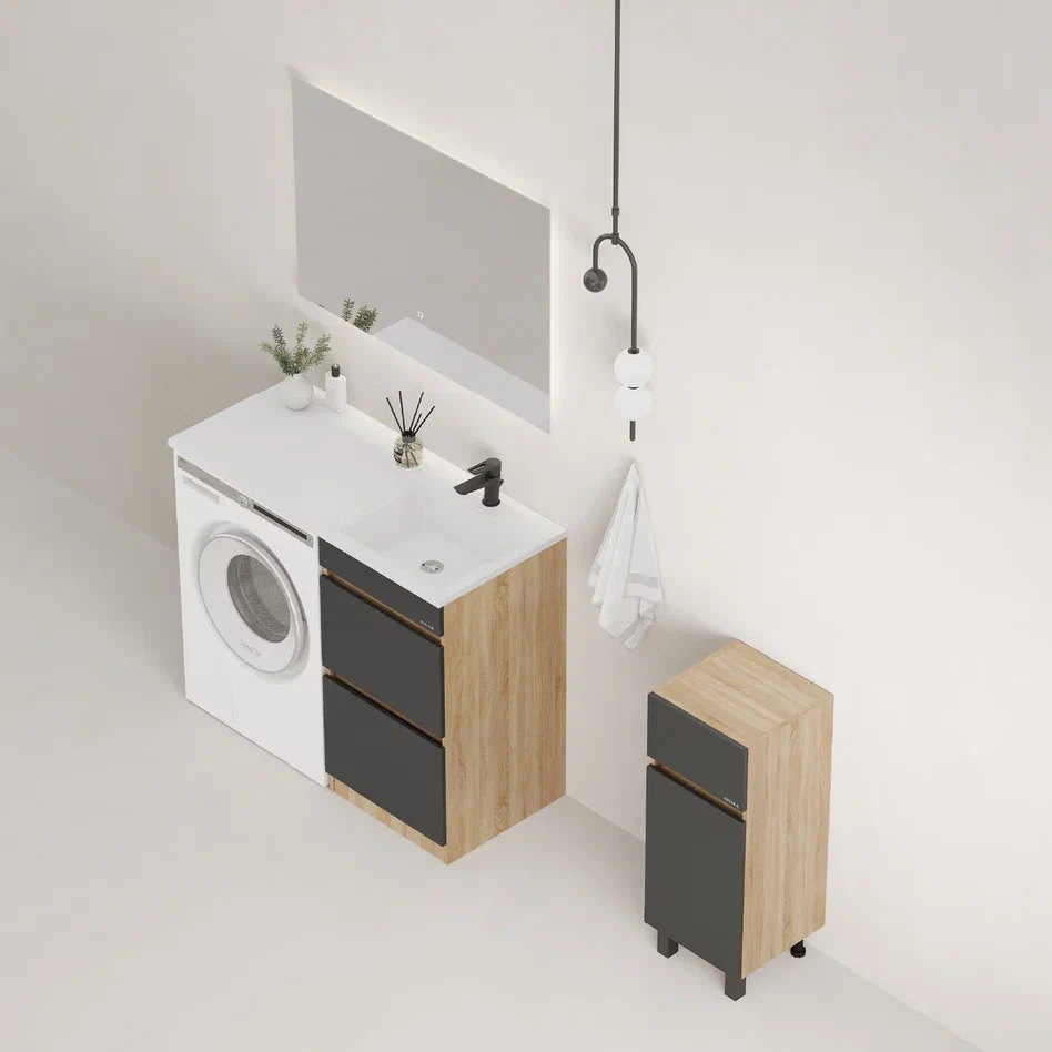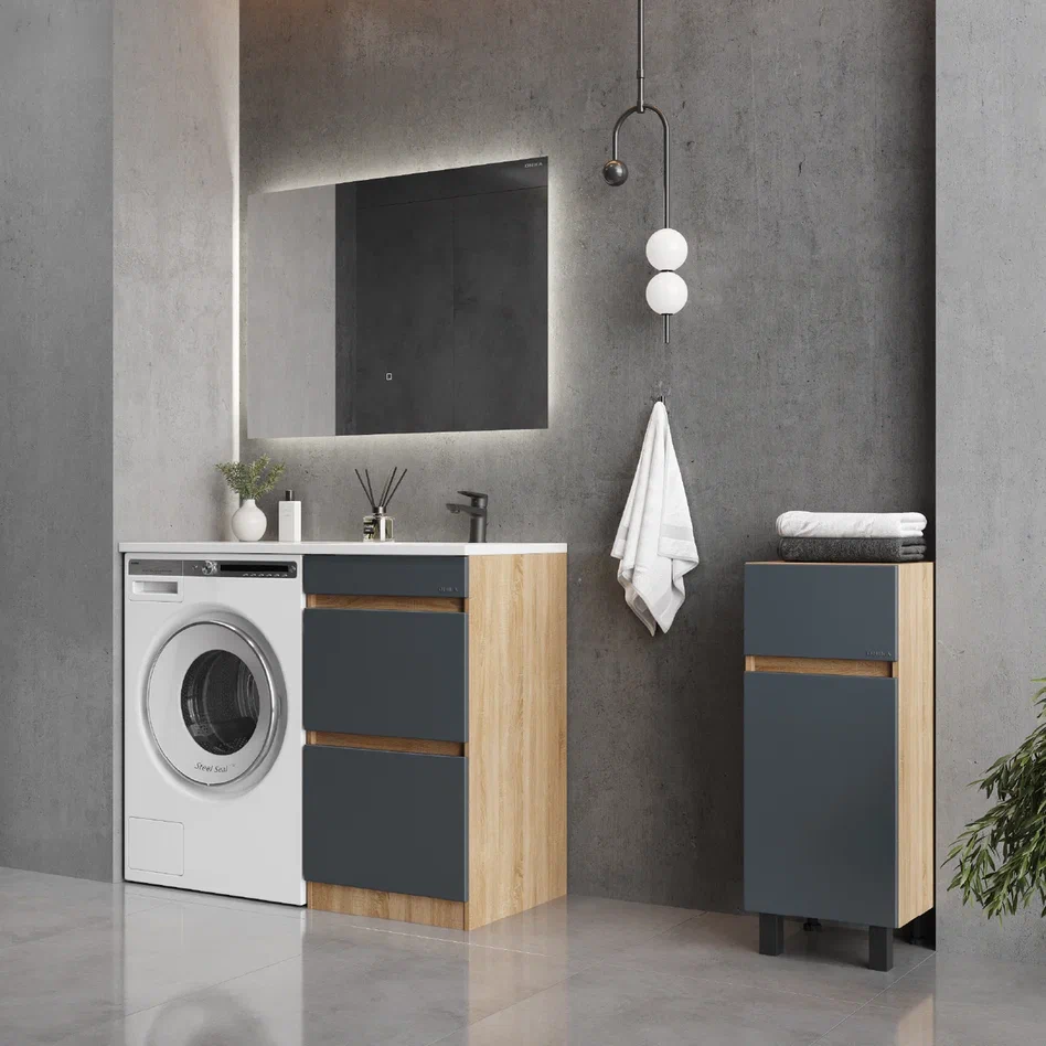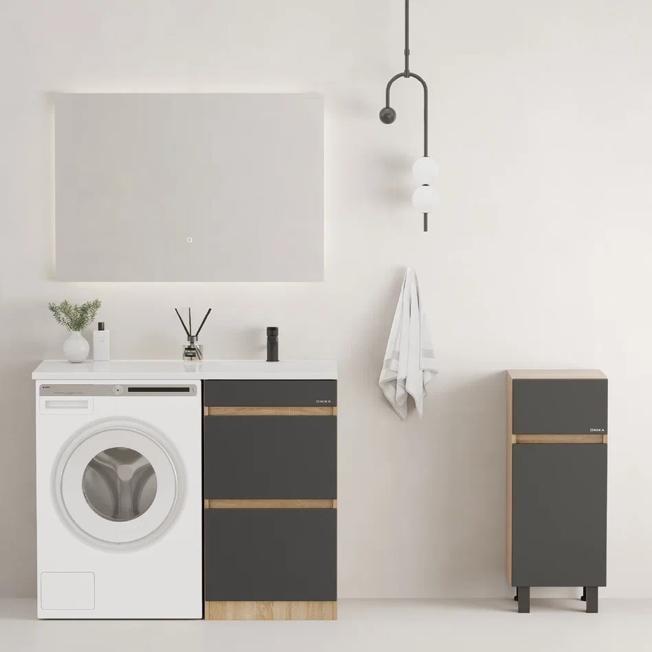 Onika Тумба под раковину Милтон 48 напольная под стиральную машину графит/дуб сонома