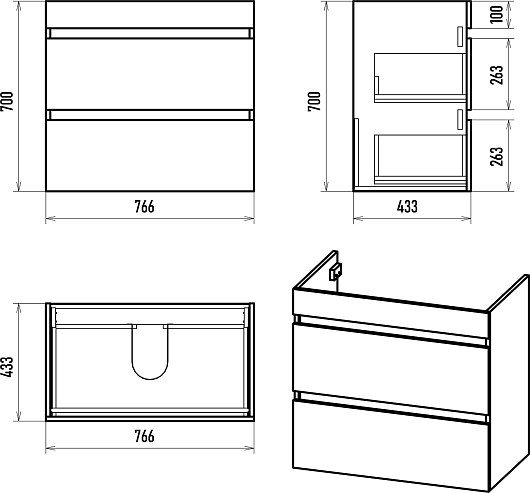 - Направляющие скрытого монтажа с механизмом плавного закрытия.