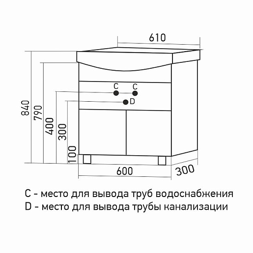 Mixline Тумба под раковину Мистраль 60 1 ящик белая