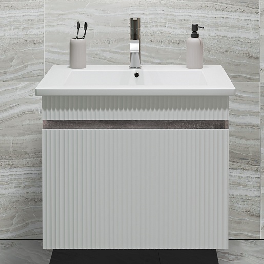 Runo Тумба под раковину Модена 65 подвесная белая/железный камень