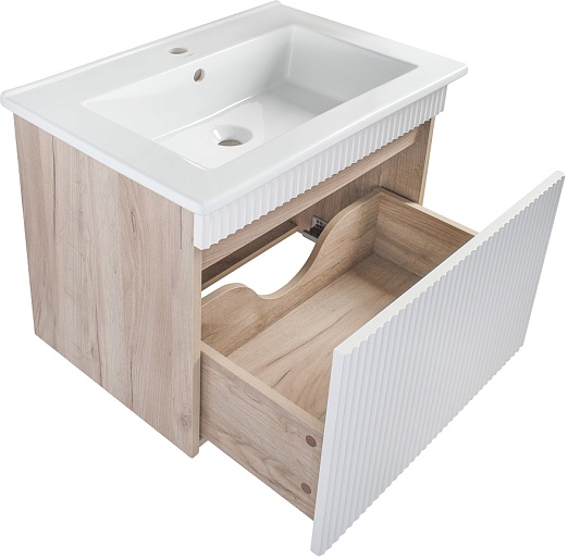 Runo Тумба под раковину Модена 75 подвесная белая/дуб крафт