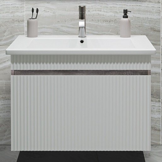Runo Тумба под раковину Модена 75 подвесная белая/железный камень