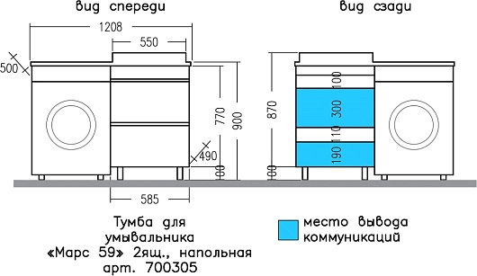 Напольная тумба под раковину над стиральной машиной Санта Марс 59 - арт. 700305.