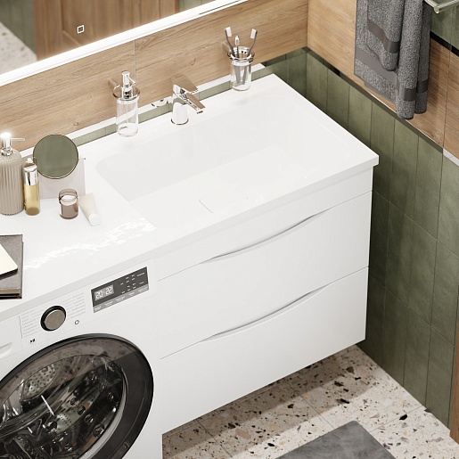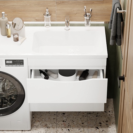 Водолей Тумба под раковину над стиральной машиной Смайл 68 R подвесная белая