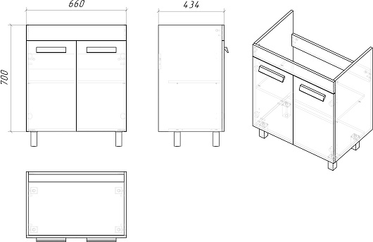 Тумба под раковину Grossman Нео 70 - арт. 107013.