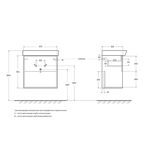 BelBagno Тумба под раковину Neon 60 подвесная Rovere Scuro