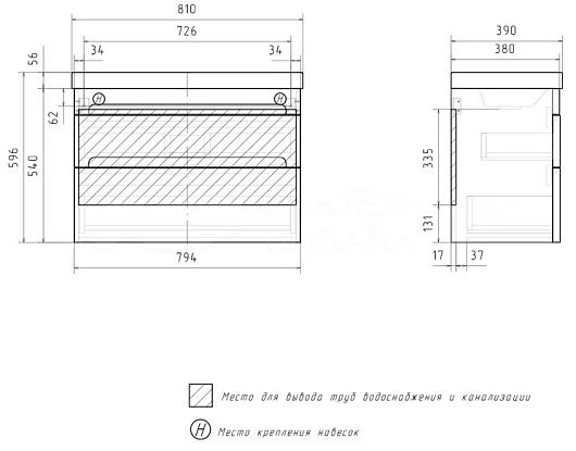 - Фасад тумбы изготовлен из МДФ и покрыт матовой эмалью. Корпус изготовлен из влагостойкого ЛДСП.