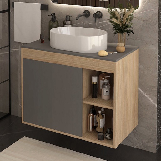 Подвесная тумба с накладной раковиной Teymi Nura 80 Lori 50 дуб/графит - арт. T60534 / T50502.