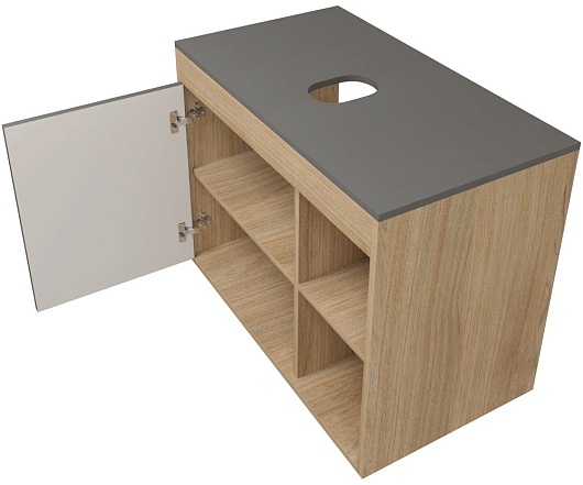 - Система хранения: 1 распашная дверка, 2 открытые полки.