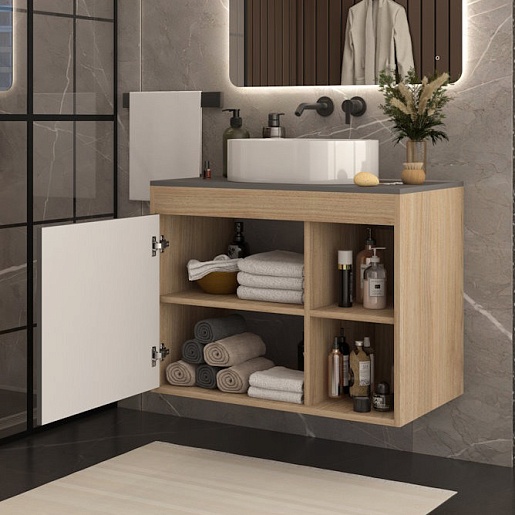 Тумба под раковину Nura 80 подвесная дуб/графит
