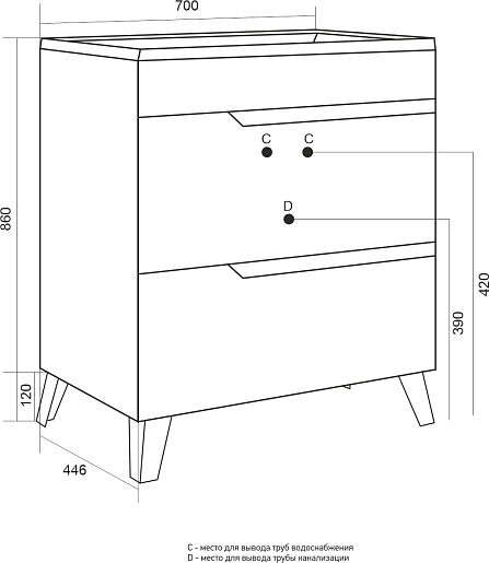 - 2 выдвижных ящика с механизмом плавного закрытия (доводчиками).
