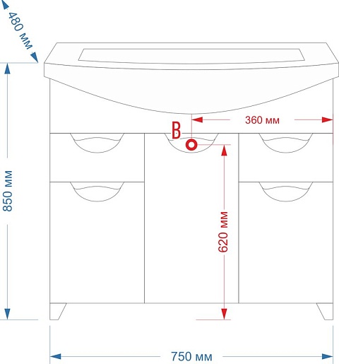 - 2 распашные дверки, 2 выдвижных ящика.