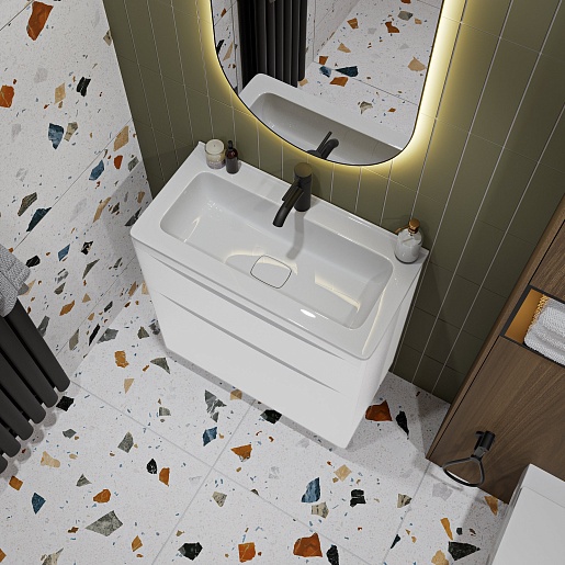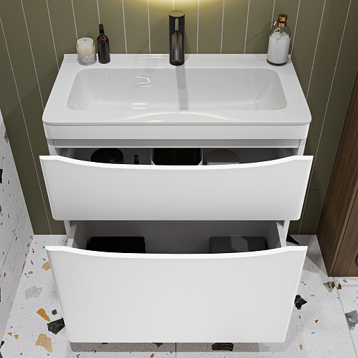 - Нижний вместительный ящик позволит эргономично разметить все необходимые ванные принадлежности.