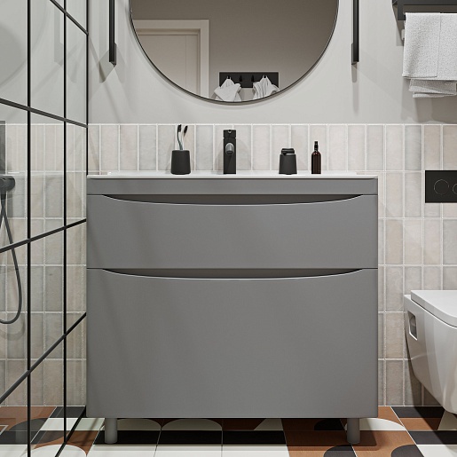 Тумба под раковину Vivon Ostin 90 напольная серая матовая - арт. Ostin-noz-90-GR.