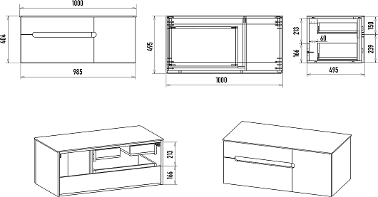 - 2 выдвижных ящика, 1 распашная дверка.