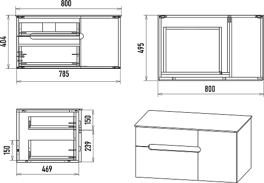 Подвесная тумба под раковину Brevita Palissandro 80 L - арт. PAL-50080-501П2Я.