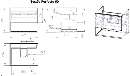 Подвесная тумба под раковину Dreja Perfecto 60 - арт. 99.0811.