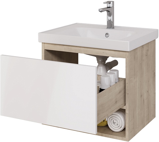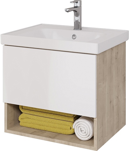 Dreja Тумба под раковину Perfecto 60 подвесная белая/дуб эврика