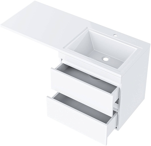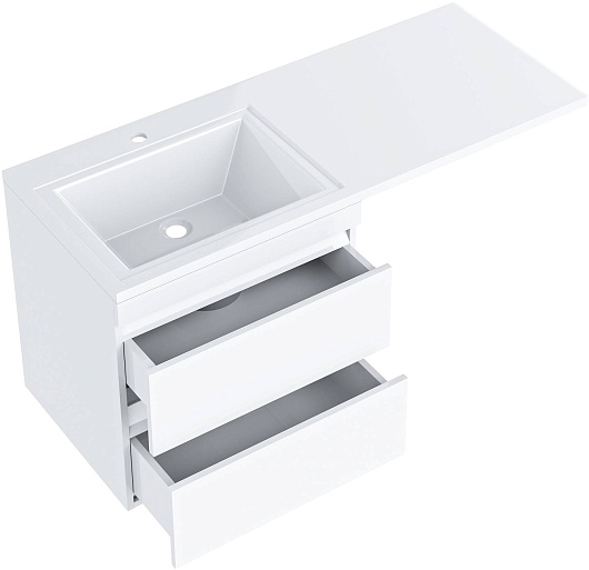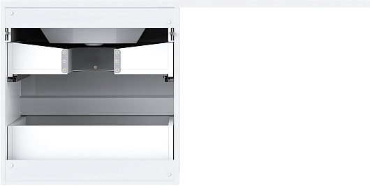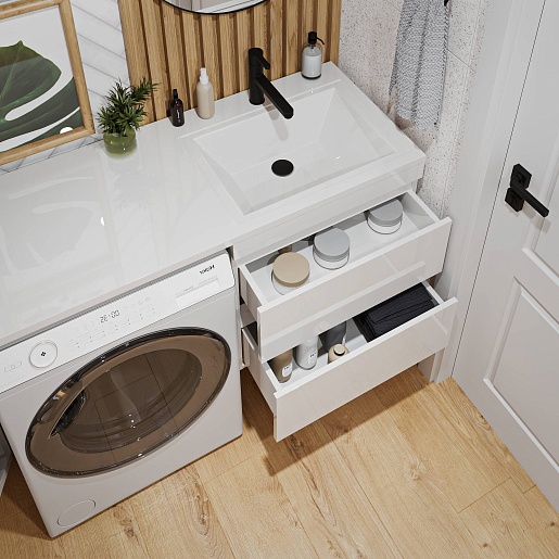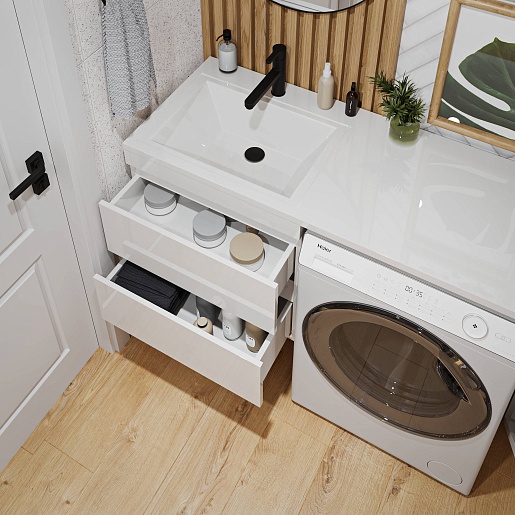 - Для размещения ванных принадлежностей предусмотрено три вместительных ящика, оснащенных направляющими с механизмом плавного закрытия - доводчиками.