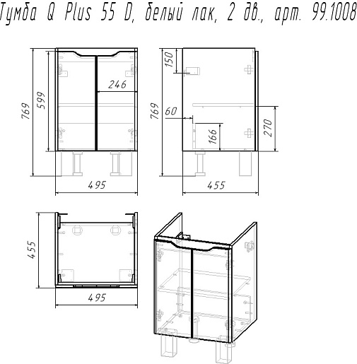 Тумба под раковину Dreja Q Plus (D) 55 - арт. 99.1008.
