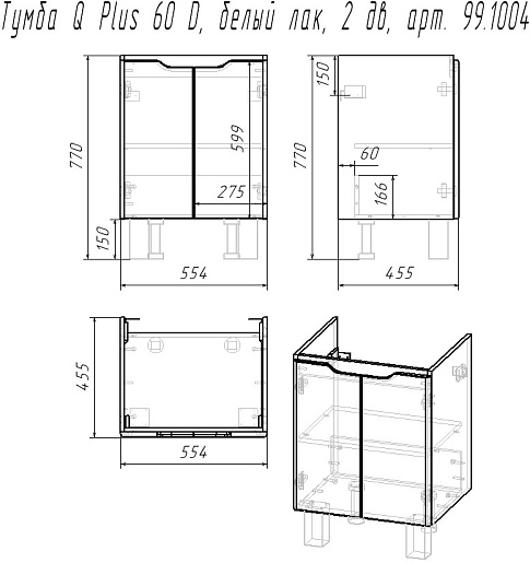Тумба под раковину Dreja Q Plus (D) 60 - арт. 99.1004.